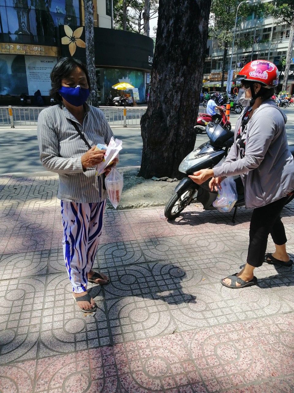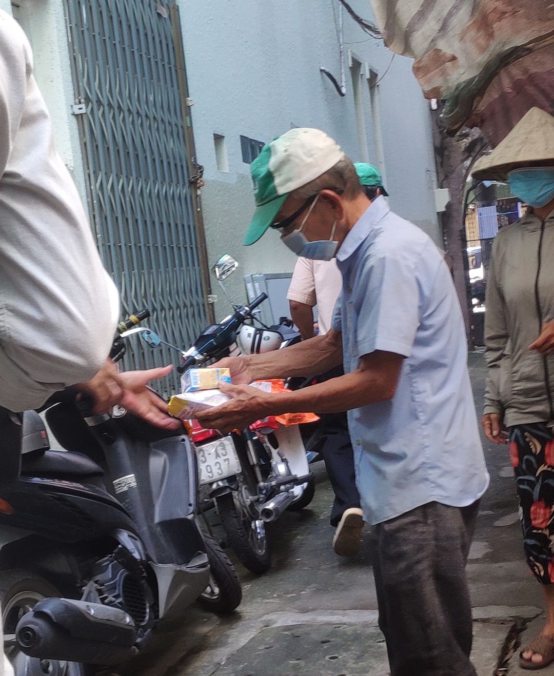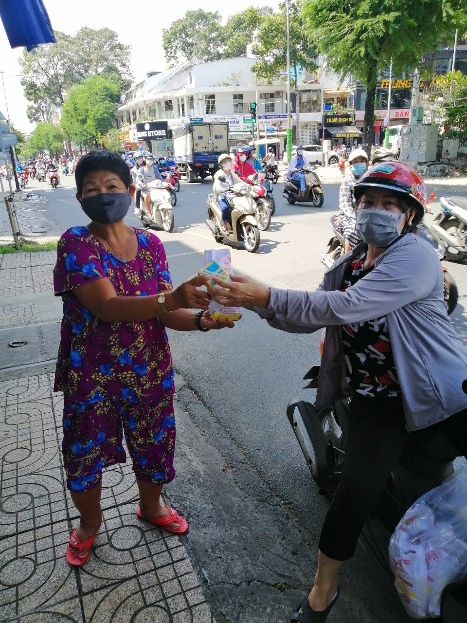 hôm nay Thứ 3 ngày 2/11/2021. buổi hoạt động của quán cơm.gửi cả nhà một số hình ảnh chị Nghĩa đi Phát bánh mì Sữa đậu nành cho bà con khó khăn ở khu vực SG.