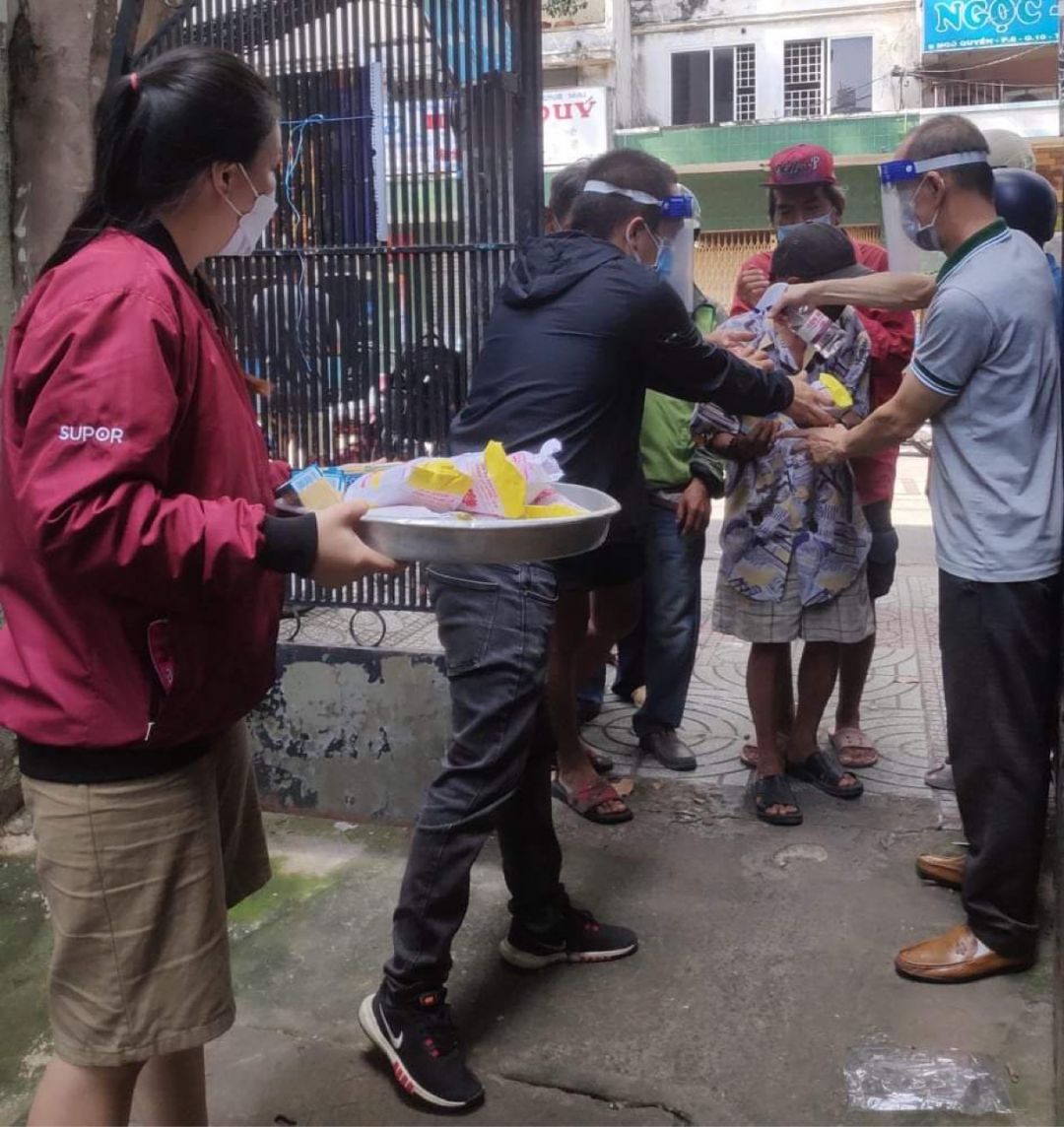 hôm nay ngày 26 tây tháng 10 năm 2021 quán cơm đã hoạt động trở lại. gửi cả nhà một số hình ảnh buổi phát 200 ổn bánh mì cho bà con khó khăn cơ nhỡ khu vực Sài Gòn ngày 26 tháng 10.