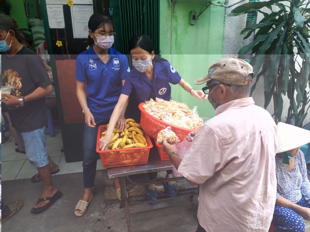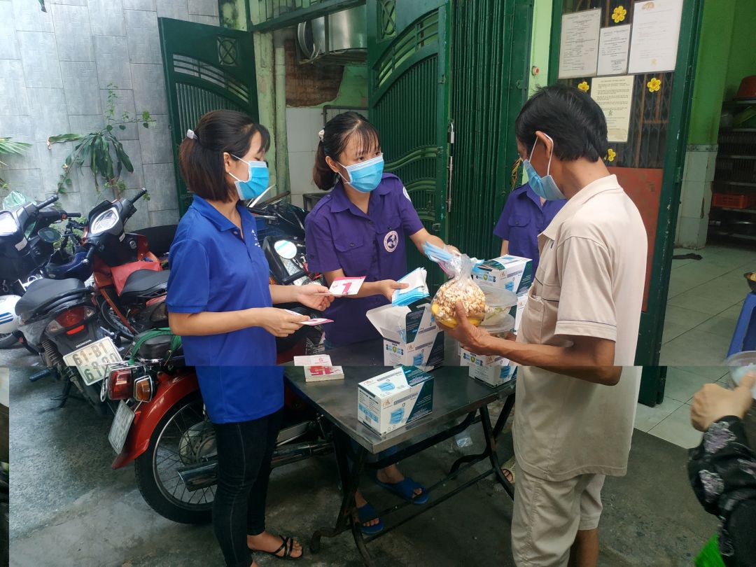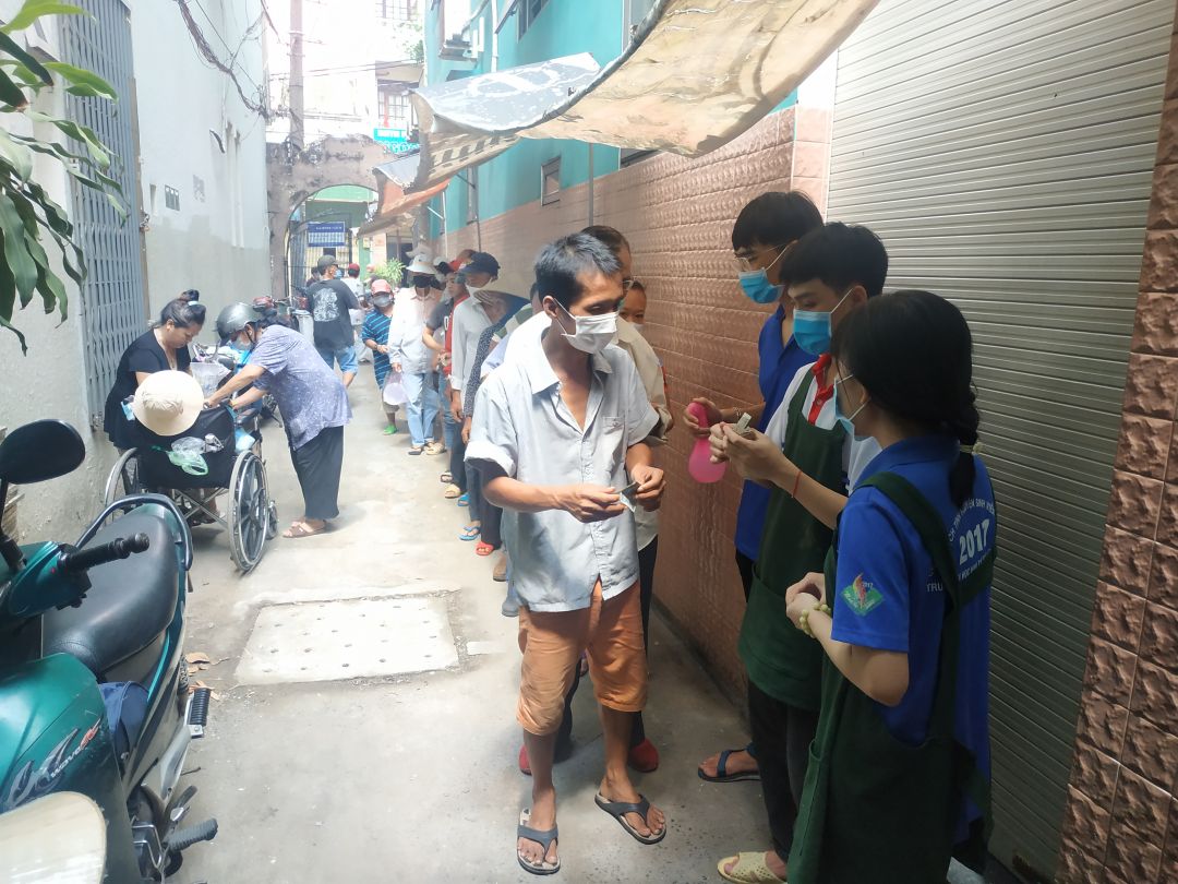 Hôm nay có sự tham gia của các bạn trong đội CTXH trường đại học Kinh Tế HCM cùng vài bạn bên đại học Y Dược HCM. Các bạn đến hỗ trợ và có tặng cho bà con khẩu trang y tế, giúp bà con phòng ngừa dịch bệnh được tốt hơn.