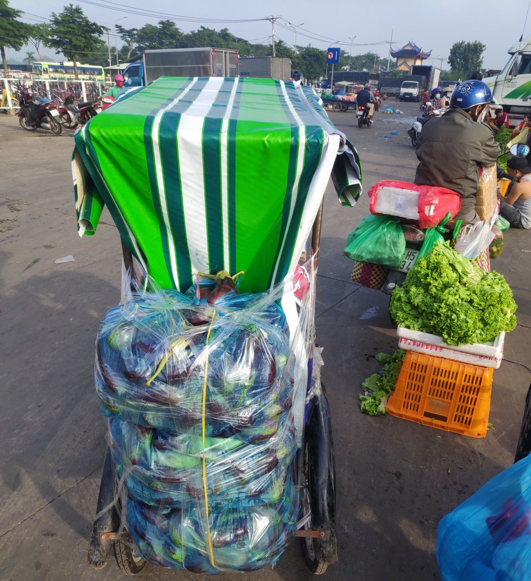 hôm nay Mai Trâm đi xuống chợ đầu mối Bình điền Bán được tiểu thương  Phát Nhi  ủng hộ 35kg rau muốn và vợ chồng Em Dịu ủng hộ  4 kg chanh+ 30 kg cà tím.