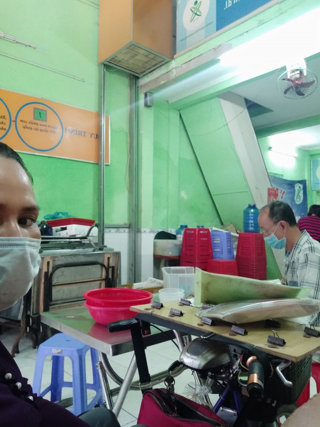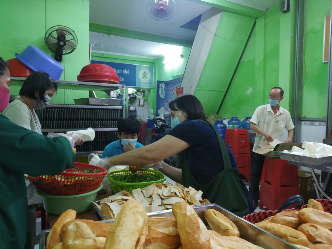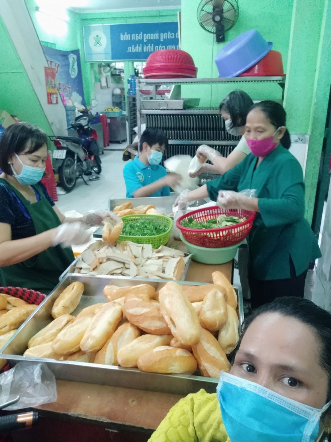 không có tình nguyện viên hôm nay chỉ có 3 thành viên cùng chị Nghĩa. Nhưng vẫn hoạt động và kết hợp khâu chế biến đúng giờ để phục vụ cho bà con.