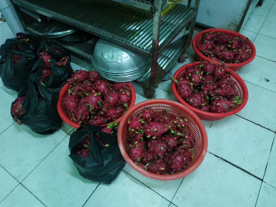 Cộng thêm sự ủng hộ hơn 50kg thanh long từ một chú sửa, vá xe di động, chở qua từ quận 7.