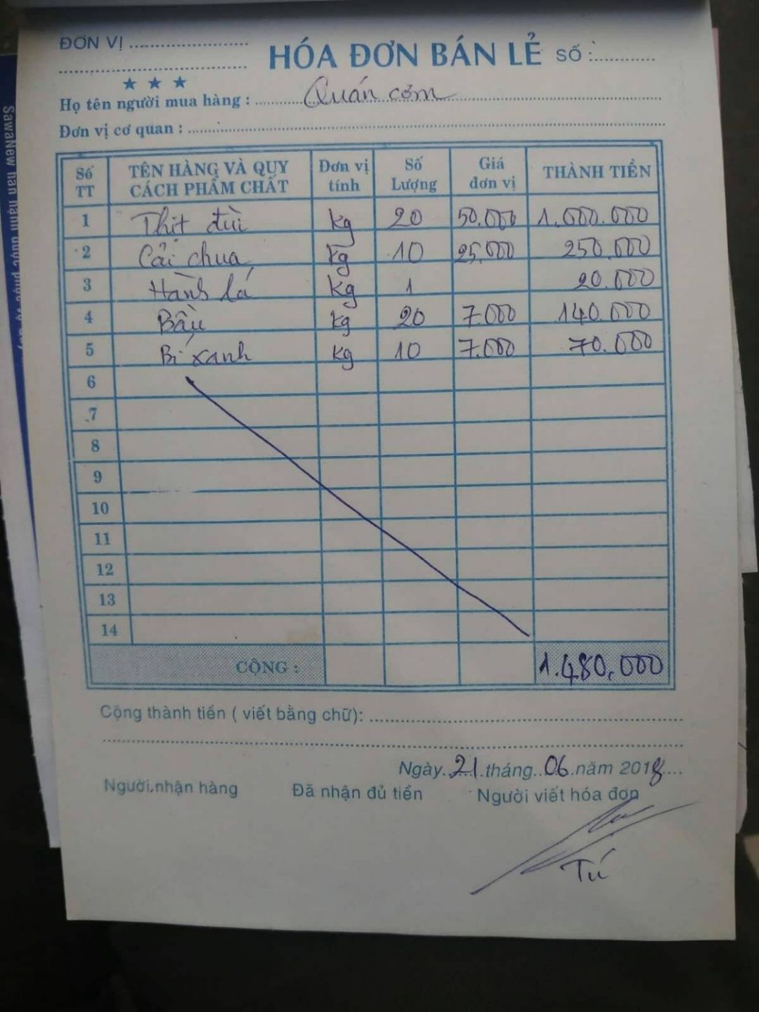 Cô Hương đã ủng hộ chi phí các buổi ăn của ngày 19/6, 21/6, 26/6 & 28/6 với tổng chi phí là 3.000.000 đồng.