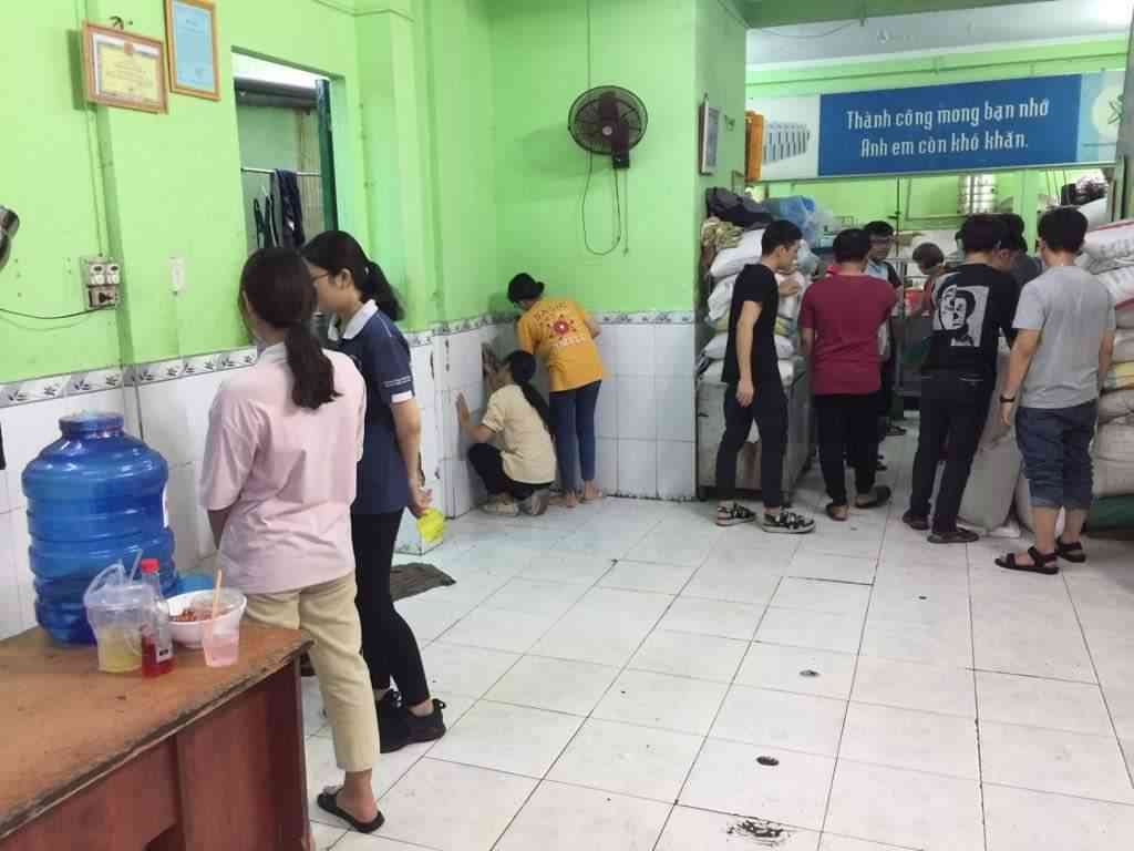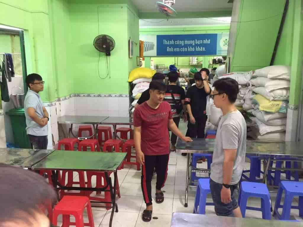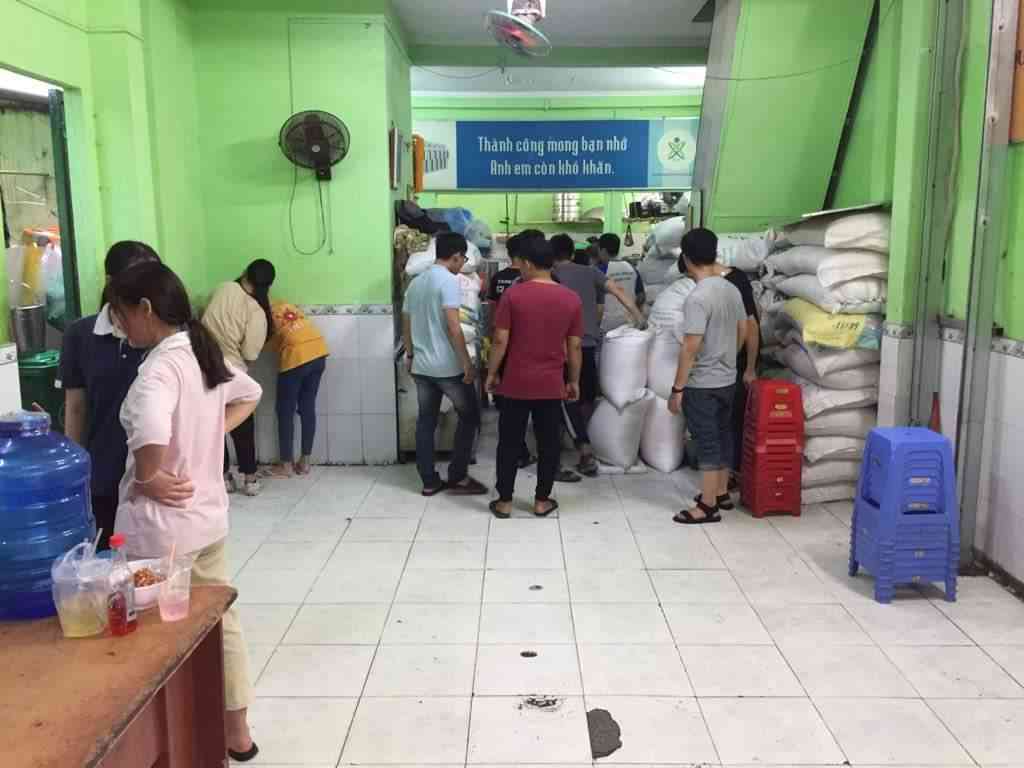 Tình nguyện viên bốc vác có 4 bạn từ đội xung kích khoa Điện - Điện tử ĐH Bách khoa Tp.HCM sẽ tới Quán cơm lúc 6h00.