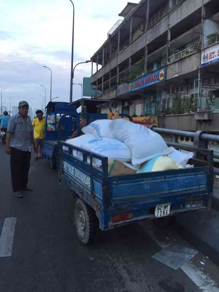 Cả đêm thấp thỏm lo vì không đặt được xe trung chuyển Gạo tới điểm nhận hàng thì tới 4h00 sáng nay 6x cũng kêu được xe nhỏ và phải chia làm 2 lần vận chuyển.