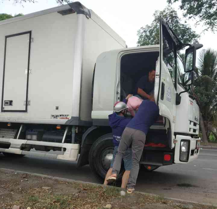 Hình ảnh Anh6x cùng với Lê Tuấn Tú bê gạo lên xe.