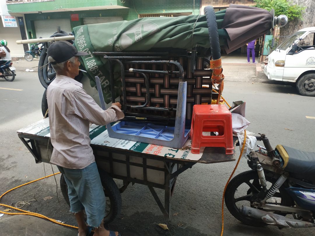 Cộng thêm sự ủng hộ hơn 50kg thanh long từ một chú sửa, vá xe di động, chở qua từ quận 7.