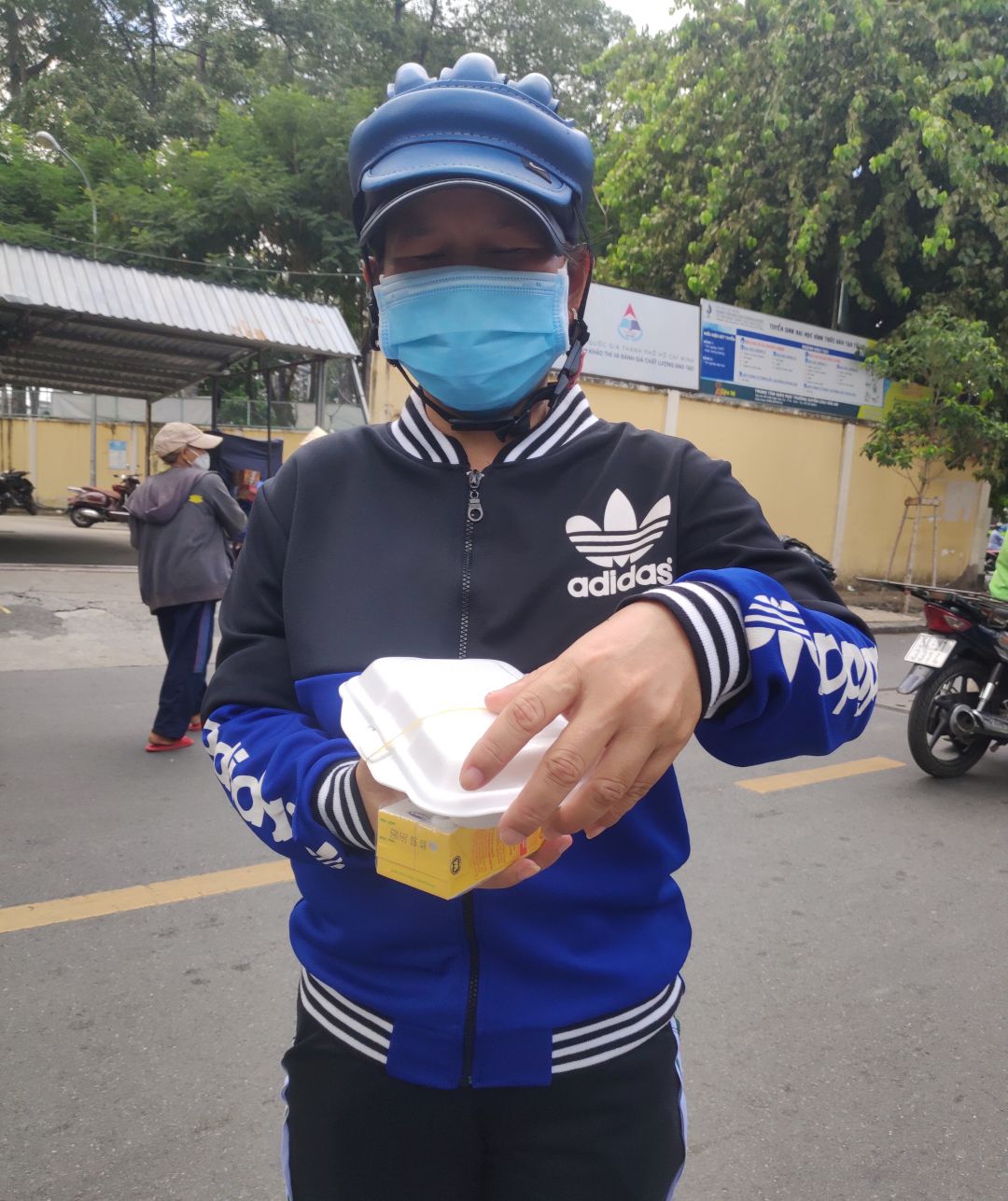 hôm nay Thứ 3 ngày 2/11/2021. buổi hoạt động của quán cơm.gửi cả nhà một số hình ảnh chị Nghĩa đi Phát bánh mì Sữa đậu nành cho bà con khó khăn ở khu vực SG.