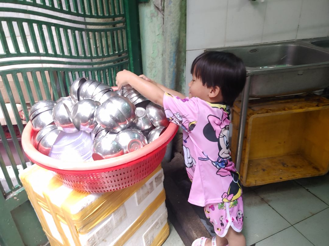 Quán cơm nay có nhận thêm người nhận lương hỗ trợ cho quán, chị Đỗ Hoàng Oanh sẽ phụ dọn rửa ở quán cơm bắt đầu làm từ ngày 13/9. Mức lương công nhật là 100,000đ/ngày.