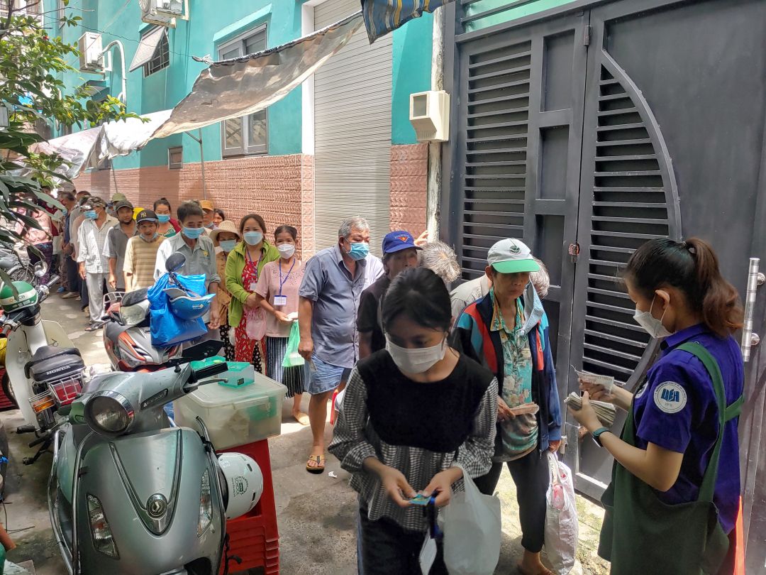 Và bà con bắt đầu xếp hàng chờ được phục vụ...