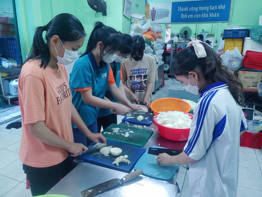 Từ tuần rồi là đã kết thúc đợt hỗ trợ của các bạn SV đội CTXH trường ĐH Kinh Tế nên quán khá vắng TNV, chỉ có các cô đến hỗ trợ là chính.