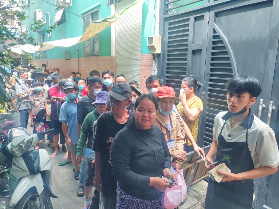Ngày thứ 5 mở lại, nên quán phát 400 ổ bánh mì miễn phí tặng bà con.