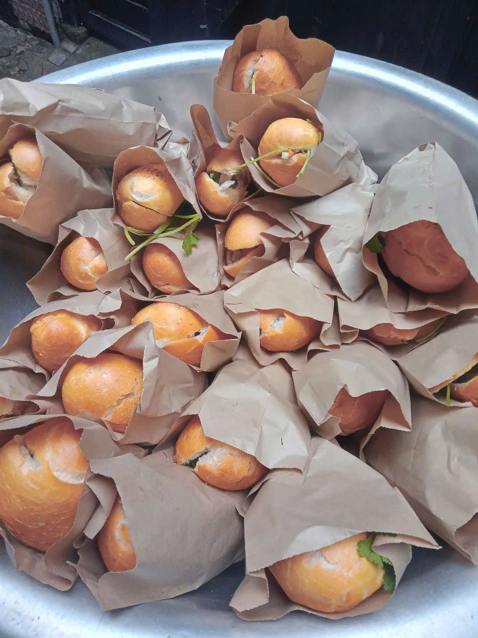 Ngày thứ 5 mở lại, nên quán phát 400 ổ bánh mì miễn phí tặng bà con.