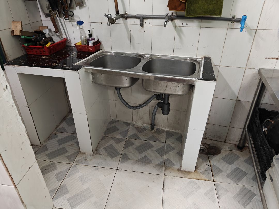 - Cải tạo lại khu vực bồn rửa, đập đi các phần mục, giữ lại khung cũ, ốp gạch và gia cố khung sắt cho chắc chắn.