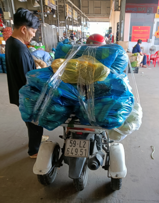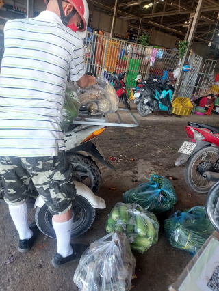 hôm nay ngày 26 tháng 1 năm 2026 tiếp tục như thế .Trâm nhờ Anh6 chạy xuống chợ đầu mối Bình điền chở rau củ quả về cho Quán Cơm.Hôm nay Anh6 mới mua tân cường cái baga chở đồ cho tiền.