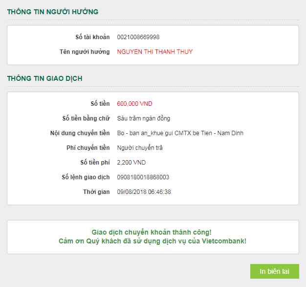 ThaiDzuy đã gửi tiền CMTX Quý 3/2018 cho cháu Tiến qua tài khoản Thino.