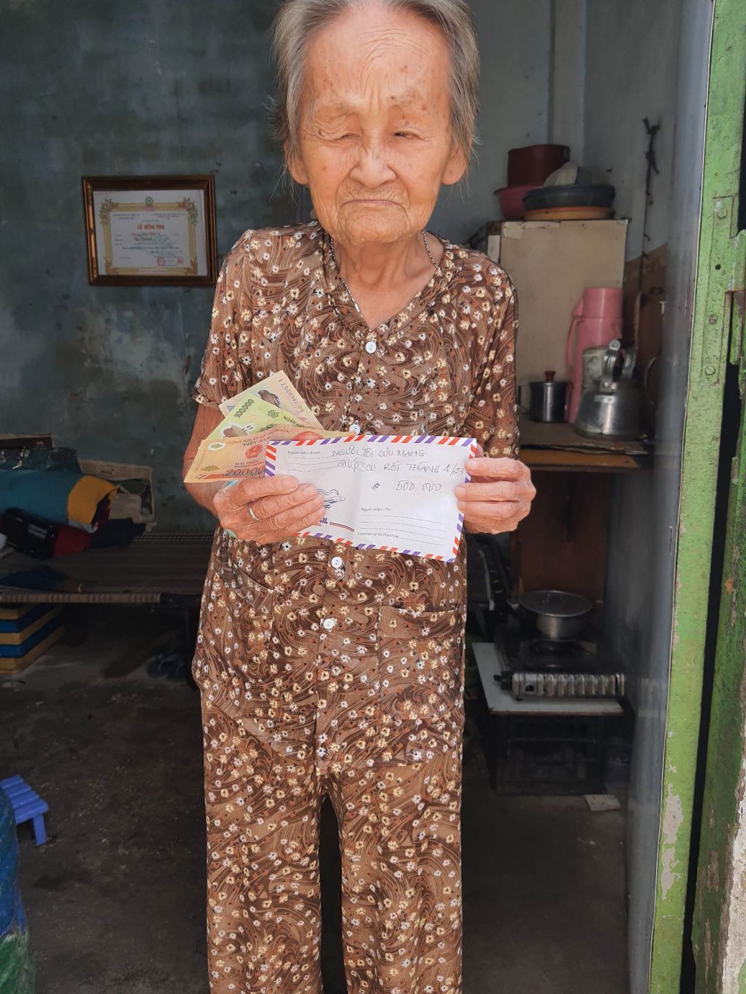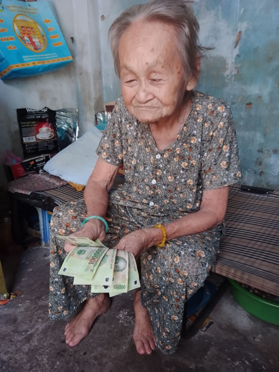 Ngày 10/4, Phụng và em Đạt, anh Hải nhóm Đồng Giác đã đi trung chuyển 500k CMTX T4/22 từ Viethuong đến cụ Rớt. Đồng thời bạn bè của Phụng đã gửi ít quà tặng cụ: sữa tươi, cafe gói, nghệ viên...