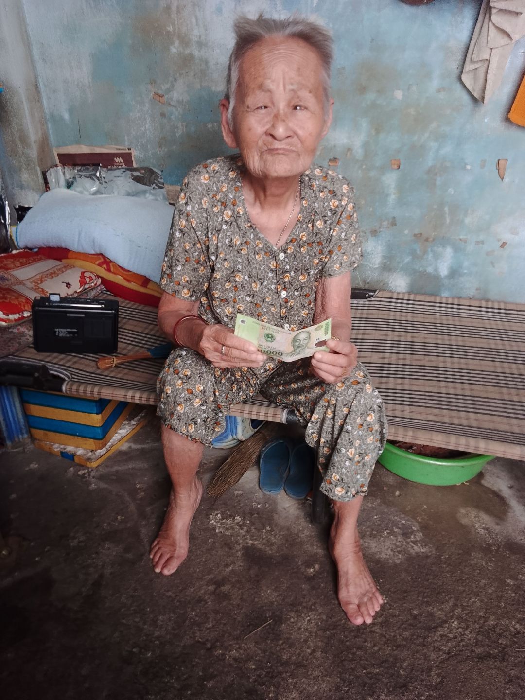 Chiếc giường bố cũ kỹ, hư hỏng của cụ đã được các bạn của LP ở Bà Rịa mang bỏ - thay thế giường mới cho cụ sử dụng.