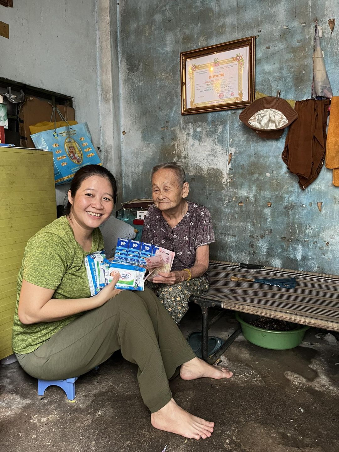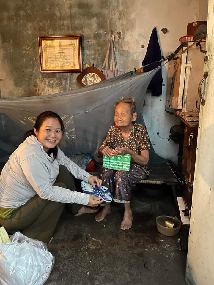 Ngày 14/9, Phụng và em gái đã đến thăm cụ. Phụng đã chuyển 500k CMTX T9/23 từ Viethuong đến cụ Rớt, và gửi tặng sữa tươi + khăn ướt của bạn bè Phụng.