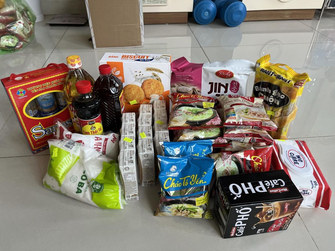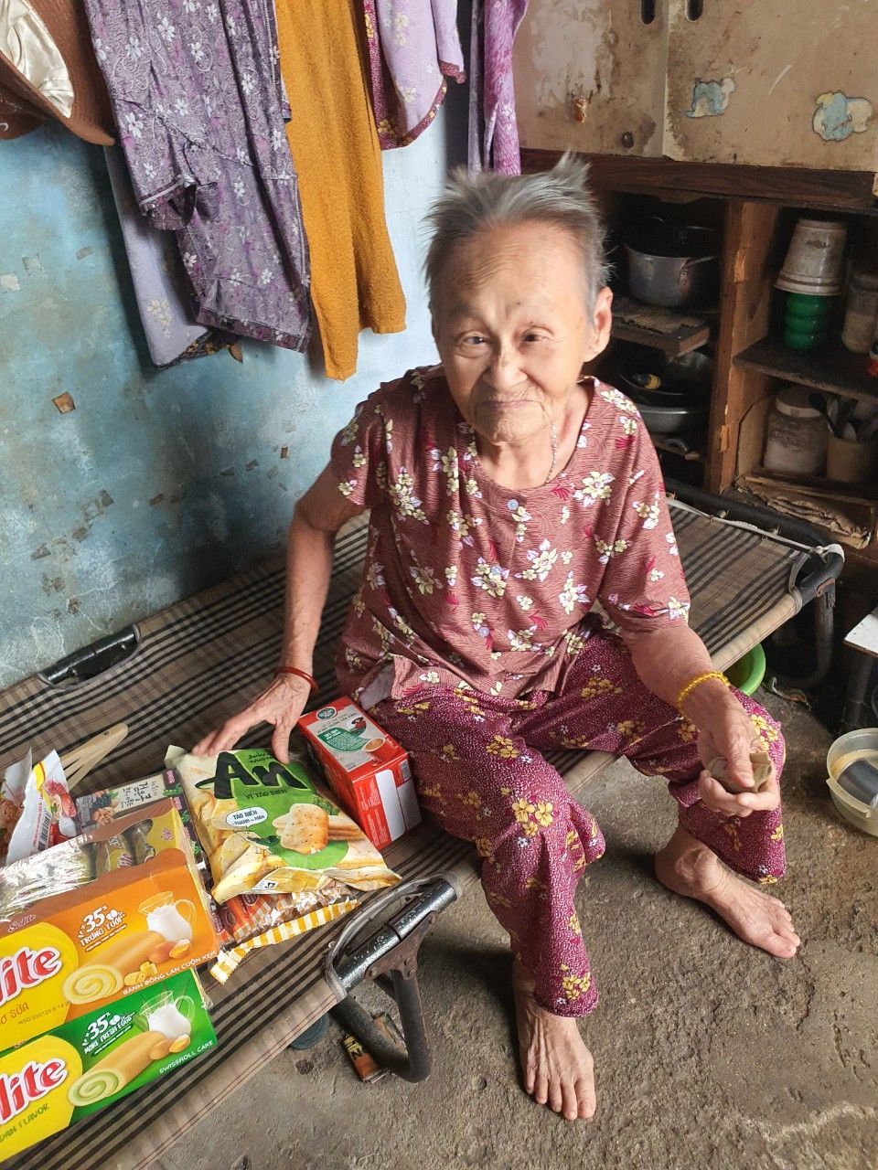 _ Ngày 30/7/24, em Vân đã mua phần quà trị giá 500k của bạn Phụng nhờ gửi tặng cụ Rớt: bánh, sữa, cafe...