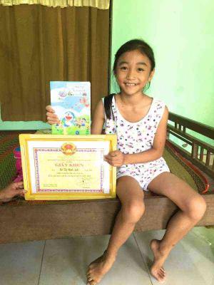 Em vẫn thường xuyên trao tiền cho gia đình Cháu. Hôm qua, em đã trao CMTX tháng 08,09,10/2015 tổng cộng 1200k cho Cháu. Hiện tại Cháu vẫn khỏe và đi học bình thường.. Nhưng do Cháu ăn ít nên năm nay cháu đã học lớp 2 nhưng chỉ hơn 16KG. Gia đình rất cảm ơn DD và MTQ luôn giúp đỡ Cháu..