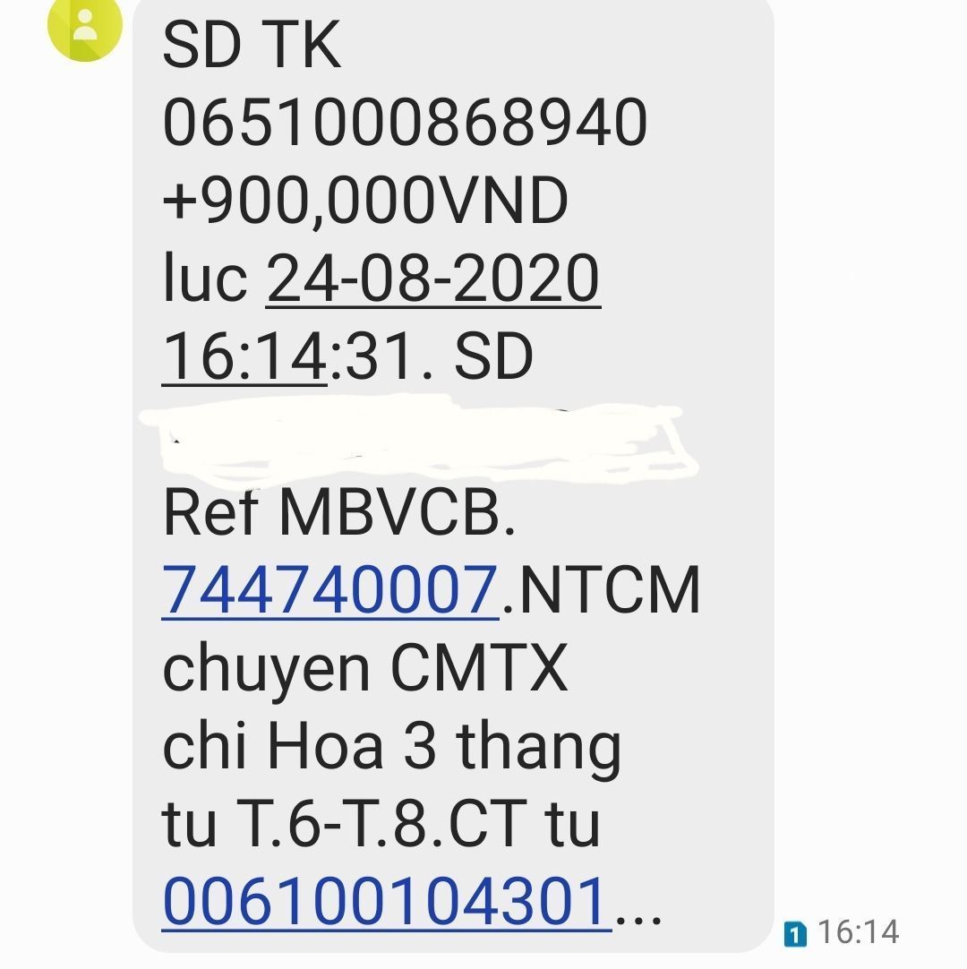 0651XXXXXXX. Le Ngoc Dung. Nh Vietcombank cn Duy Xuyen-Quang Nam.