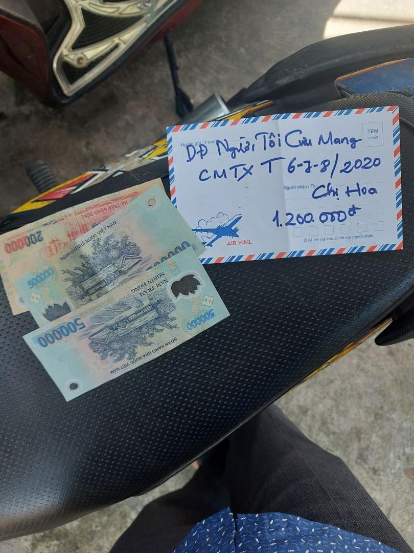 Trưa nay mình đã đi trao 1200k tới con gái chị Hoa. Tình hình là chị vẫn đang chạy thận và cách ly ở Đà Nẵng. Chi phi ăn ở và đi lại giữa khu cách ly và bệnh viện được bao trọn. Con trai làm công nhân ở Đà Nẵng và con rễ đi lái xe dịch vụ vì dịch nên đang thất nghiệp ở nhà. Con gái vẫn thất nghiệp ở nhà chăm con nhỏ.