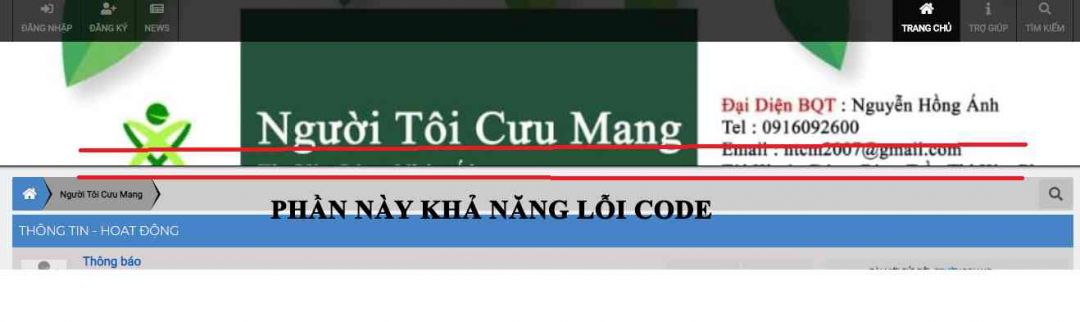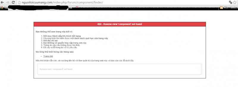 - Nhấp vào link Diễn Đàn thì xuất hiện thông báo lỗi như hình bên đính kèm