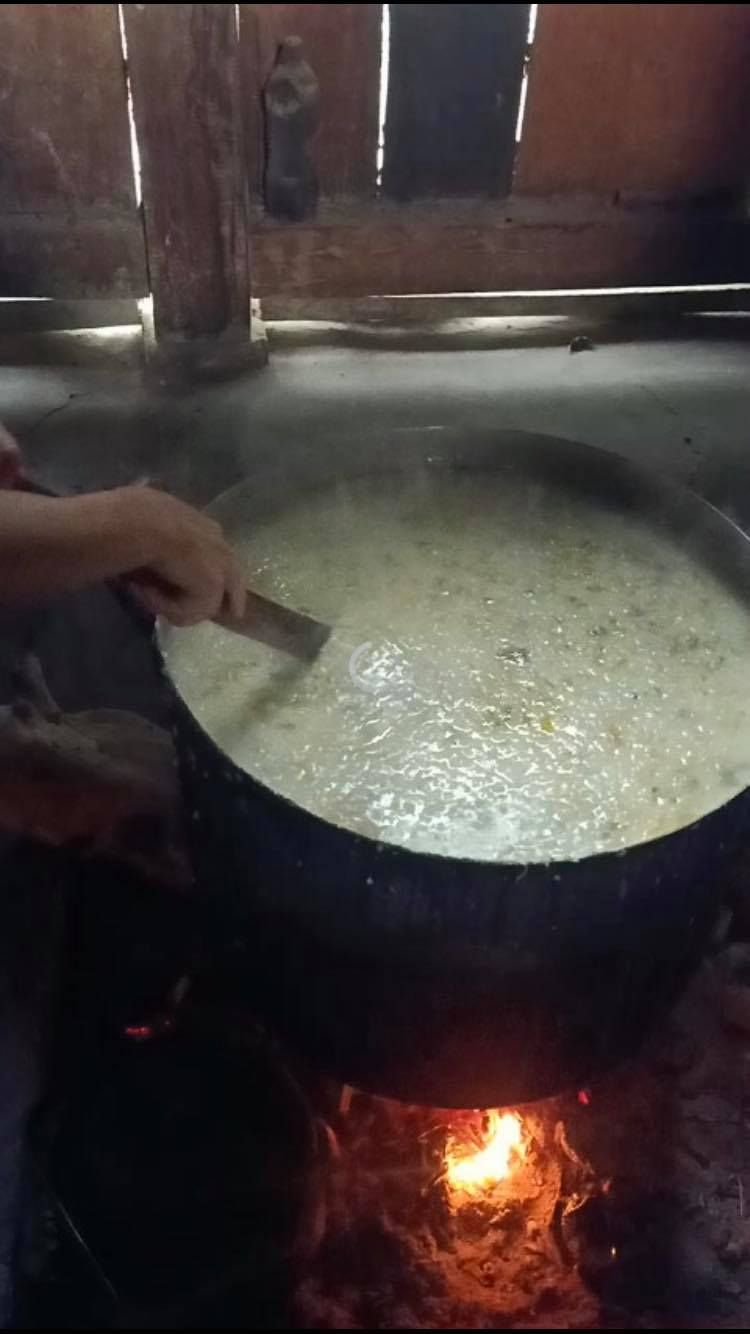 Hình ảnh nồi cháo cư pui tại điểm nấu Đăk Tuôr  Cư Pui  tháng 12/2019.