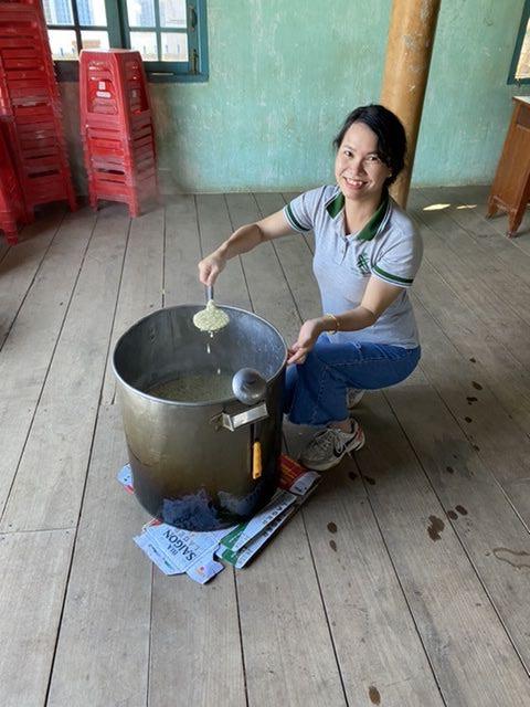 Nồi cháo sáng nay tại buôn Đăk tuôr cả nhà ạ!
