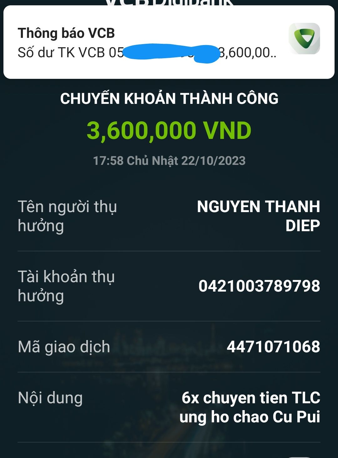 TLC đã chuyển tiền...
