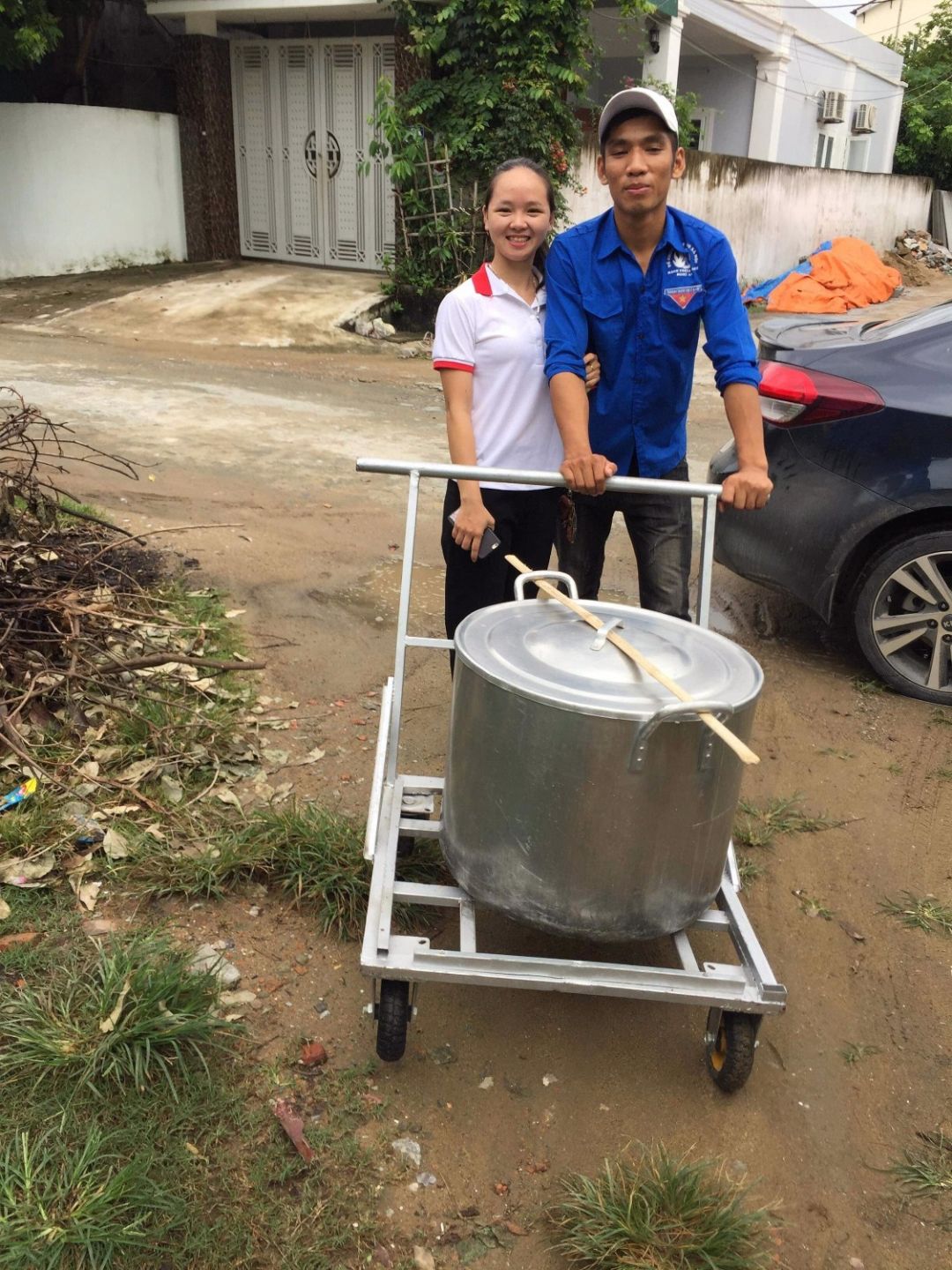 Trời mưa to nhưng các TV và TNV vẫn sát cánh cùng Nồi Cháo.