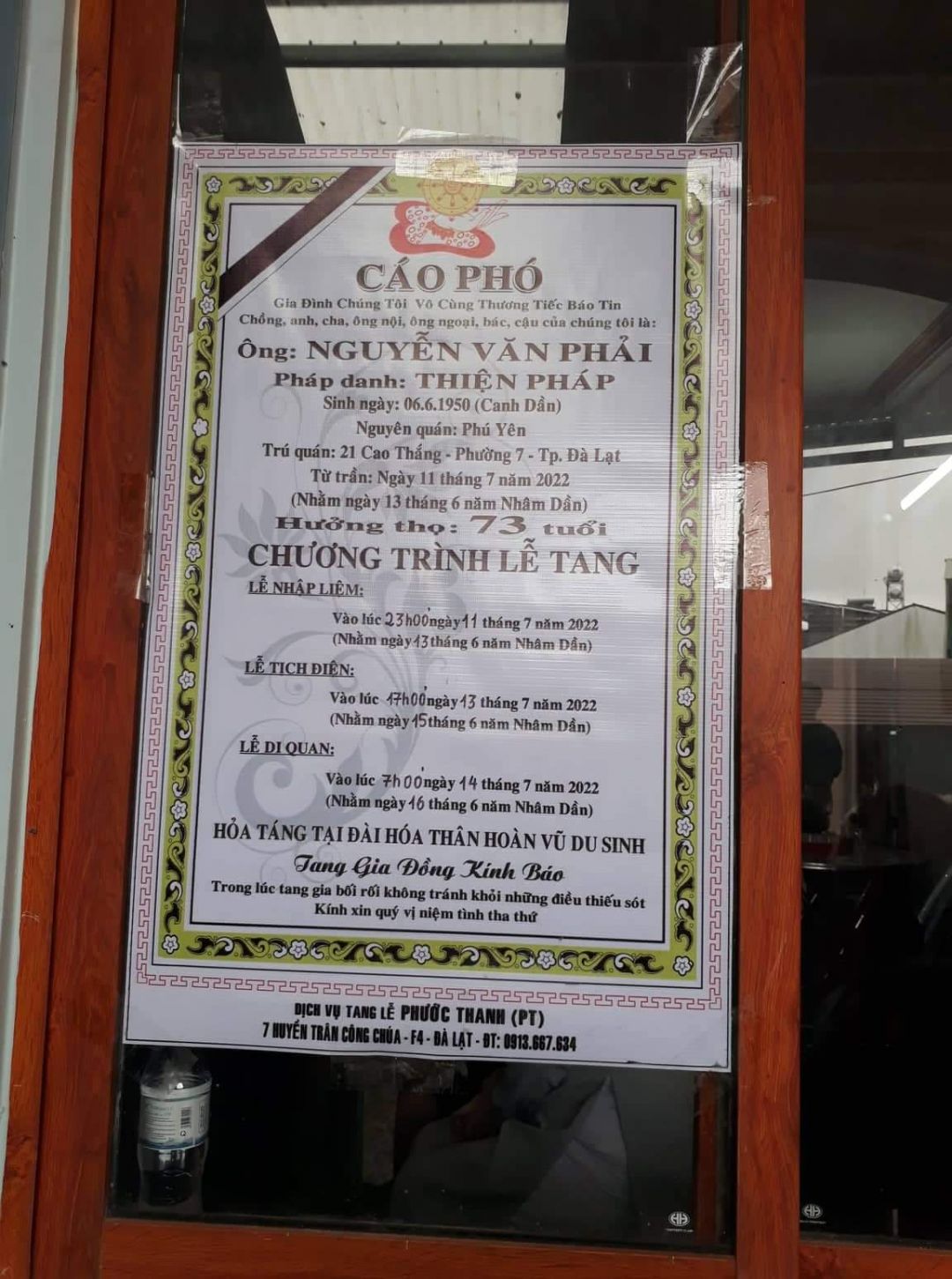 Nhờ các anh chị và các bạn khu vực Đà Lạt thông báo giúp chương trình tang lễ của anh dùm ạ.