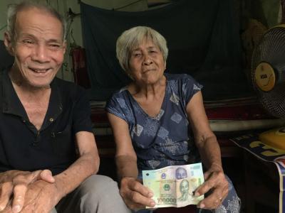 Loannguyen gửi ảnh trao tiền CMTX tháng 8/2020 - 500,000đ từ anh Viethuong cho ông bà.
