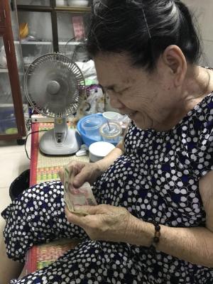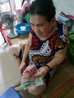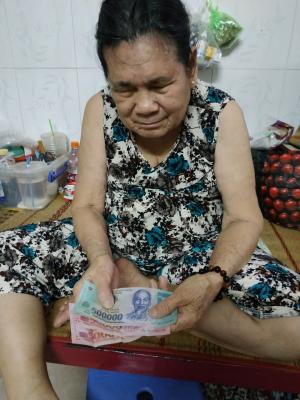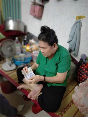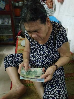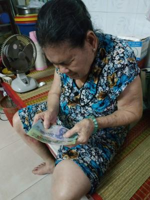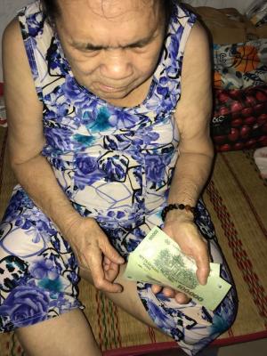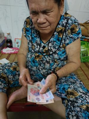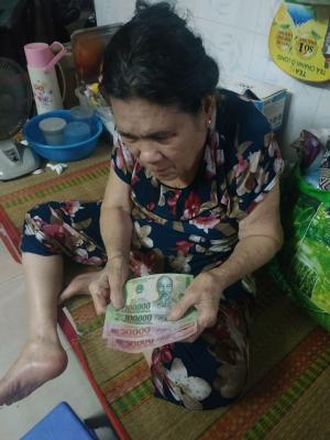 Loannguyen gửi cả nhà ảnh trao tiền tháng 7,8,9,10/2021 tổng 1,200,000đ từ anh Viethuong đế cụ Tốt.