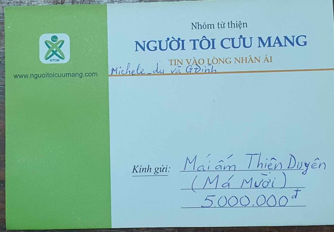 - Gửi 950.000đ tiền mặt của nhóm anh Nguyên ủng hộ.