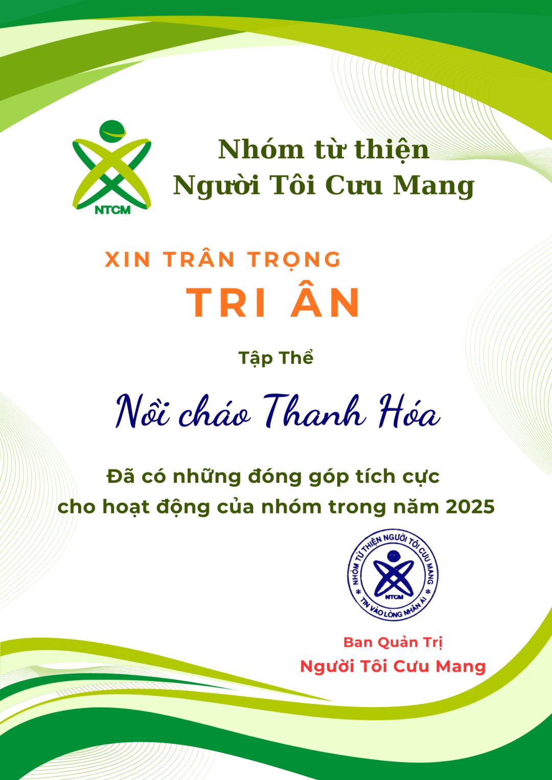 BQT xin ghi nhận và tri ân những đóng góp tích cực của tập thể Nồi cháo Thanh Hóa trong năm vừa qua.