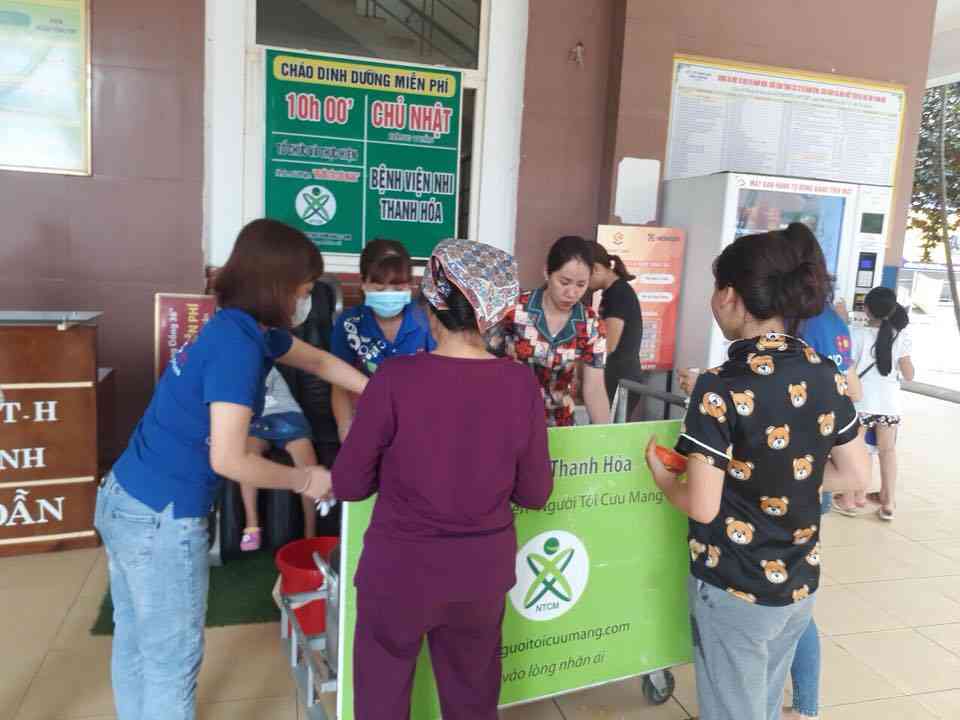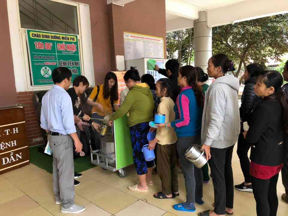 Như thường lệ nồi cháo vẫn đỏ lửa vào sáng chủ nhật hàng tuần tại BV Nhi Thanh Hóa.