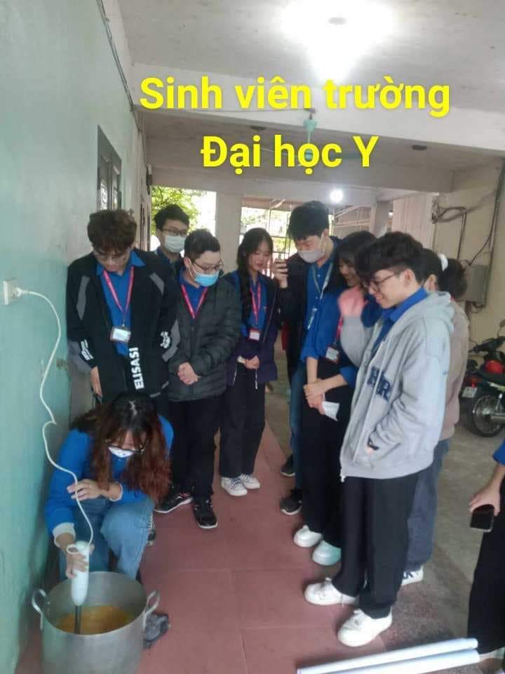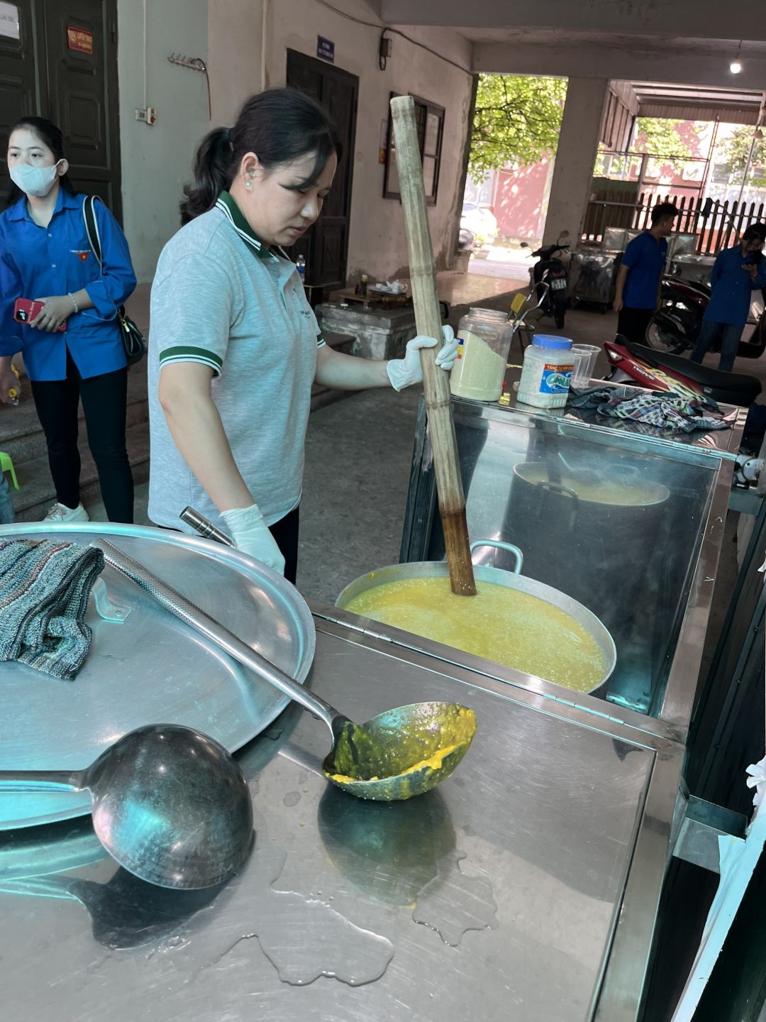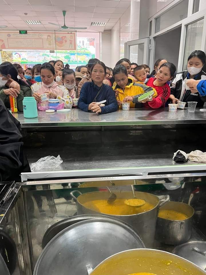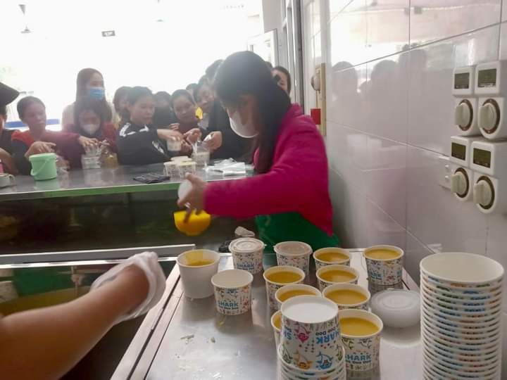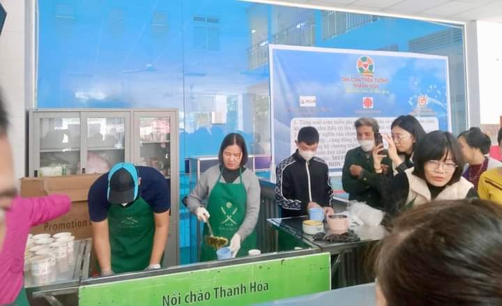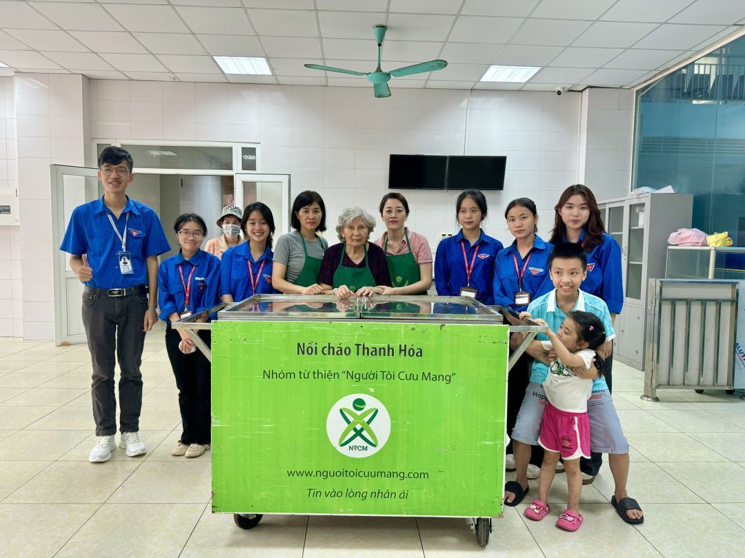 Hai cô tấm Duong Le và Hiền Bùi cùng 6 bạn SV Phân hiệu ĐHY đã hoàn thành công việc hơn cả mong đợi. Cháo ngon, sánh, dẻo thơm và không bị dính nồi… Bệnh nhân lấy cháo xếp hàng quy củ, những ai không mang theo hộp đựng sẽ có các cốc giấy được MTQ tài trợ lâu nay.