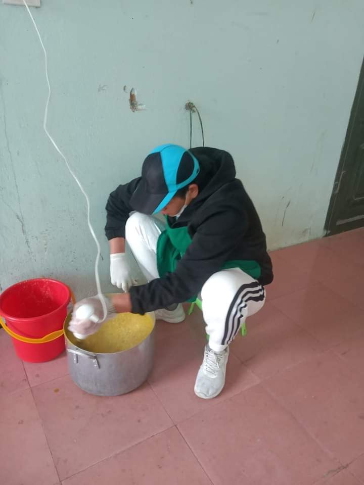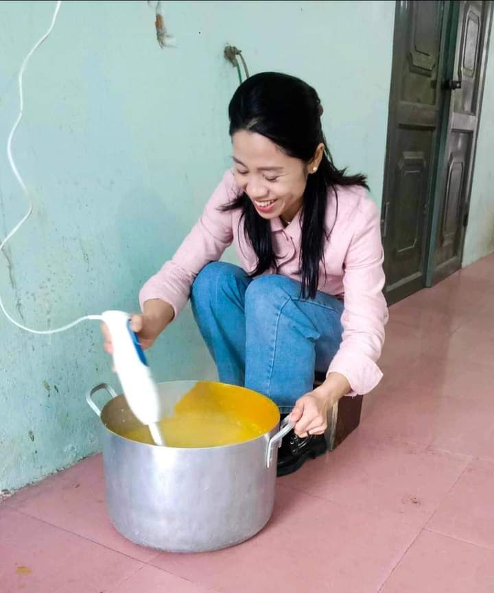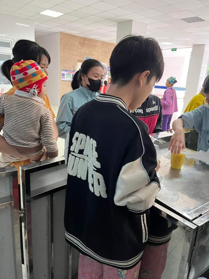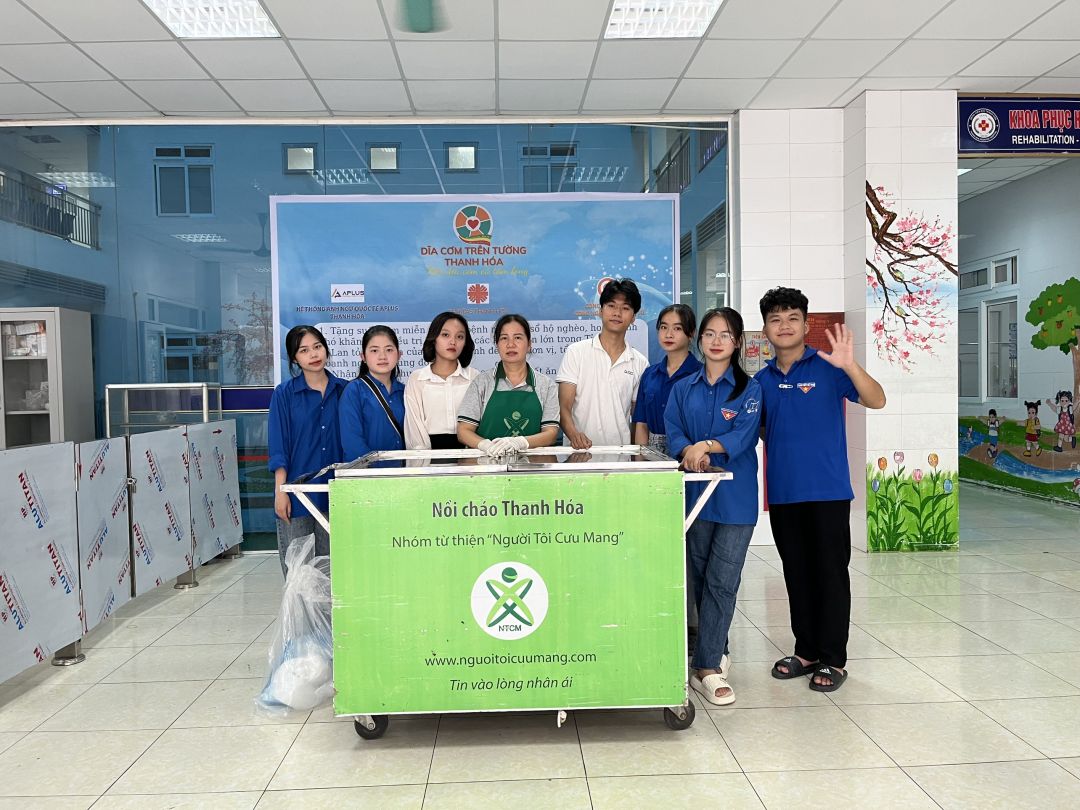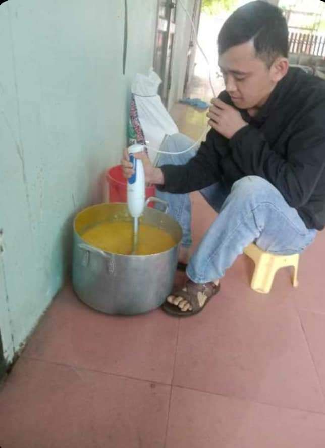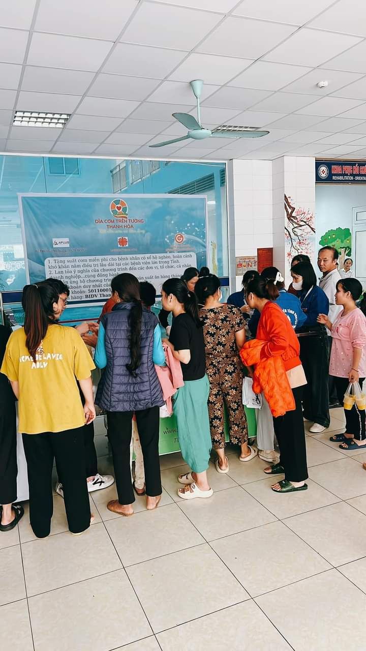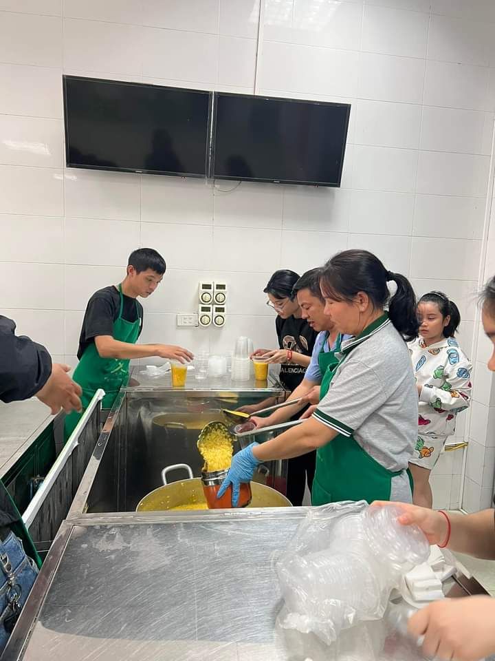 Hai cô tấm Duong Le và Hiền Bùi cùng 6 bạn SV Phân hiệu ĐHY đã hoàn thành công việc hơn cả mong đợi. Cháo ngon, sánh, dẻo thơm và không bị dính nồi… Bệnh nhân lấy cháo xếp hàng quy củ, những ai không mang theo hộp đựng sẽ có các cốc giấy được MTQ tài trợ lâu nay.