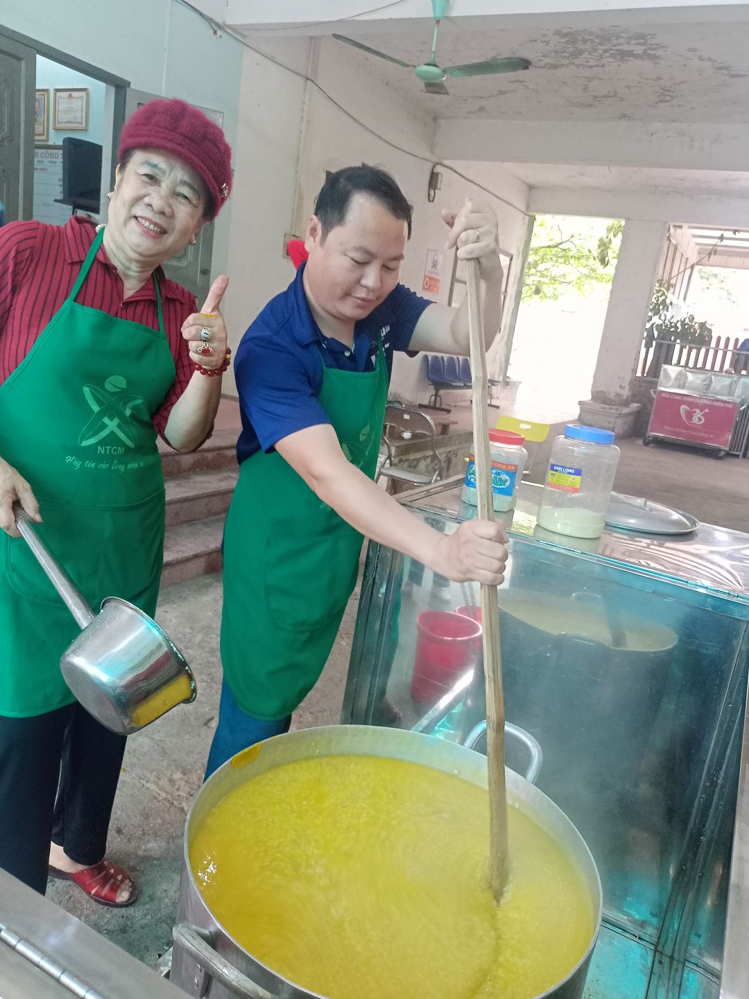 Thời tiết thay đổi . mưa độ ẩn tăng cao . Hôm nay Bác cả và bếp chính Mai  Hương đang phải uống thuốc mà vẫn hết lòng với nồi cháo ,  các cháu sinh viên đi sớm hơn mọi ngày để cùng nhau nổi lửa. Yêu  lắm cả nhà .  Chúc các bé ngon miệng và chóng khoẻ  nhé. Nồi cháo thứ 2 trong tháng 2 tuyệt vời.