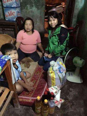 Hàng tháng chúng ta chyển qua CMTX gia đình chị Mai các nhu yếu phẩm như : Gạo , Dầu ăn , Đường , Bột canh ....