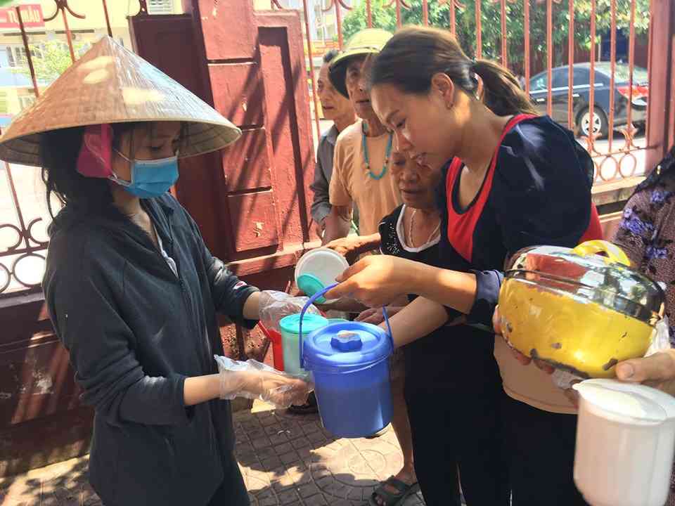 Trời Hà Tĩnh tiếp tục nắng nóng nhưng nhiệt huyết của những TNV, thành viên nồi cháo vẫn đỏ lửa đều đề phục vụ cho bệnh nhân.
