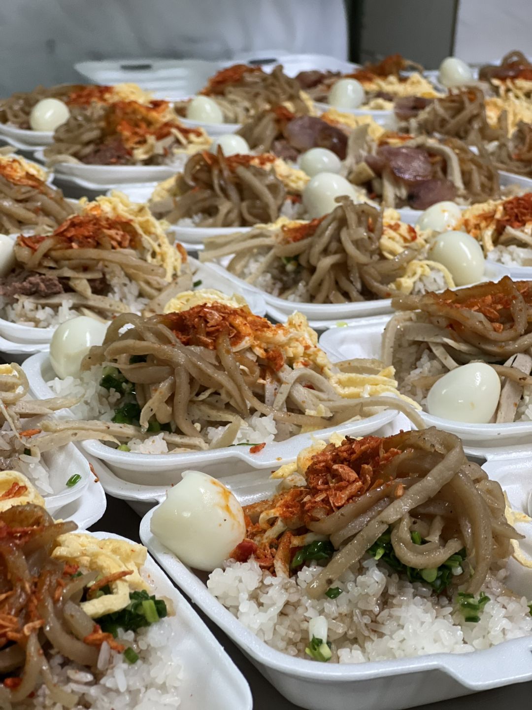 Hôm qua, chương trình thứ 7 yêu thương đã bắt đầu trở lại, mọi người ai cũng háo hức tham gia. Số lượng phần xôi làm được là 118 phần, chia cho 7 nhóm mang đi trao cho bà con kèm thêm sữa đậu nành.
