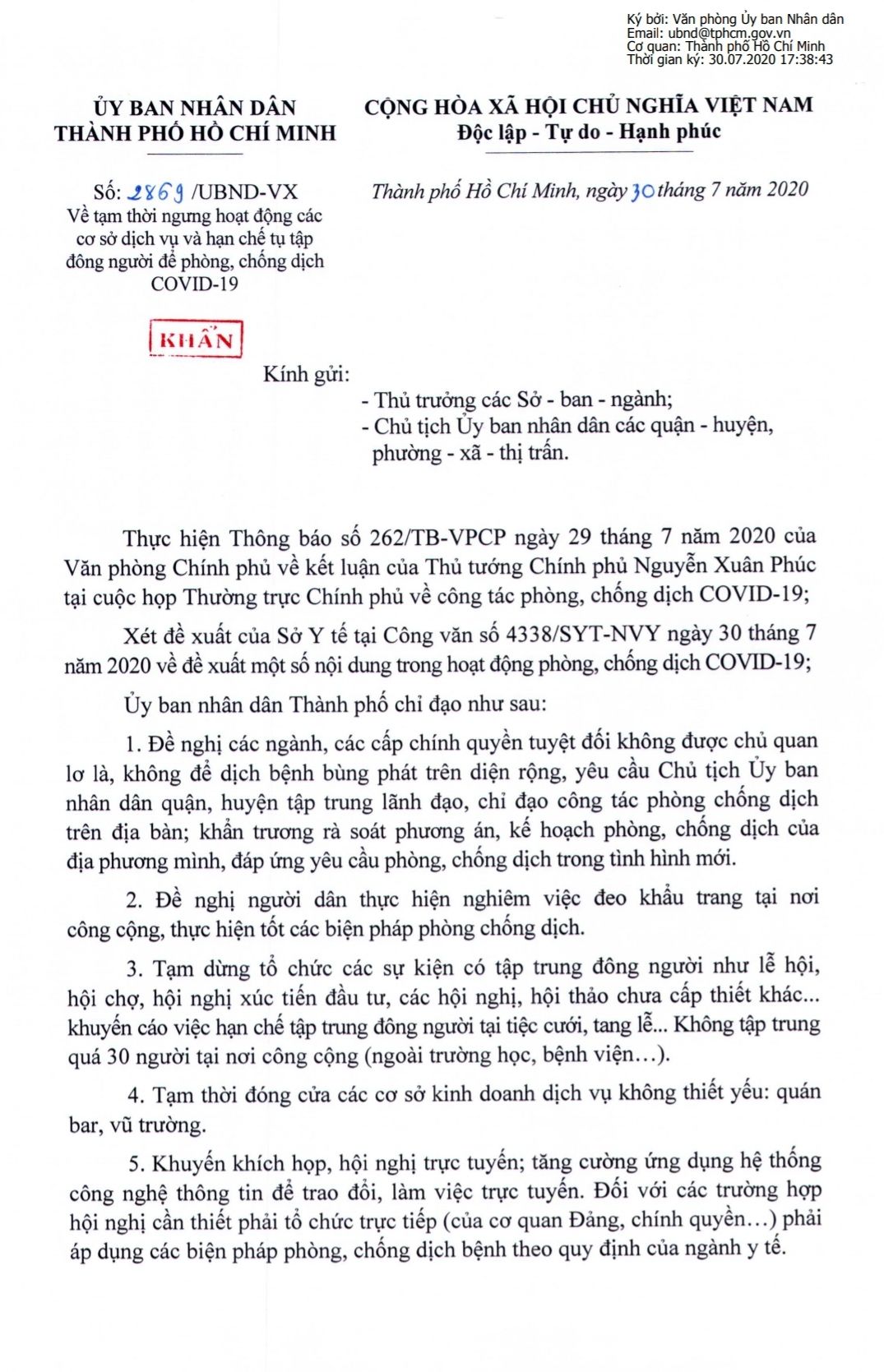 Đứng trước diễn biến phức tạp của dịch covid19, và theo công văn 2869 của UBND TP Hồ Chí Minh!
