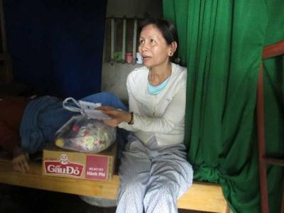 Phần vì bà ngoại gãy chân, phần vì mẹ đi lại không được nên chị Nguyễn Thị Ái ( 1988) con của gì Quảng phải ở nhà chăm sóc bà và mẹ nên không thể đi làm gì được cả, chị Ái về nhà từ tết.