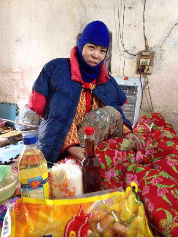 Ngày 5/2/2015 ( tức 17 tháng Chạp Giáp Ngọ ) HBL đã đến thăm và trao quà Tết cho chị Hồng. Trời hôm đó vừa mưa phùn, lạnh nên khi đến chị đang ngồi trên đệm ( là cái ruột chăn bông ) và sưởi ấm bằng quạt sưởi. Chị cũng bị viêm đa khớp nhưng lại còn nặng hơn chị Chút rất nhiều. Chị không thể di chuyển hơi xa ( dù rất chậm ) như chị Chút được; và gần như không tự phục vụ được. Cơm thì do anh trai nấu và ăn cùng. Thỉnh thoảng tắm giặt thì nhờ cháu gái hỗ trợ ... HBL nhìn thấy chị rất cố gắng nhích chân thì mới di chuyển được 10 cm, bên cạnh chị luôn có que gậy để hỗ trợ vì tay chị cũng không nâng cao được ... Chị tâm sự: nhiều lúc không muốn sống nữa; xong rồi lại nghĩ mình phải sống để trả nợ cho hết kiếp này. Thật ái ngại quá, chỉ biết động viên chị cố gắng, dù sao chị cũng còn có anh trai bên cạnh.