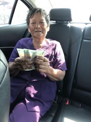 Sức khỏe Bà vẫn tốt , khi đến thăm thì không biết Khôi Sang đi đâu vì trời lúc đó đang mưa , Bà đang dọn ít đồ vào .