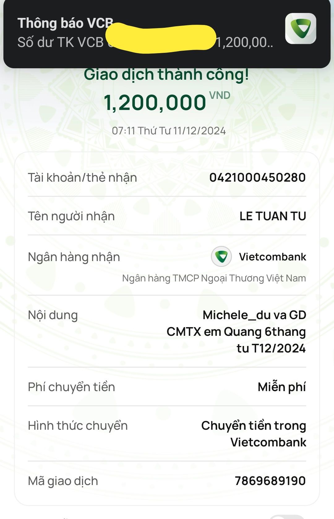 letuantu đã nhận tiền Michele_du & gia đình hỗ trợ anh Quang rồi ạ!