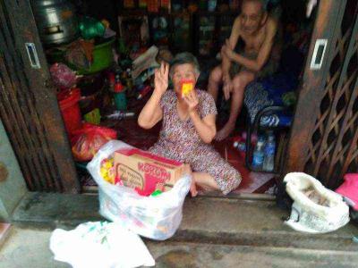 Năm nay, ông đã được 80 tuổi, nên được địa phương hỗ trợ 500.000 đồng hàng tháng. Còn bà thì cái chân vẫn chưa khỏi nên bà vẫn chưa đi bán lại được.